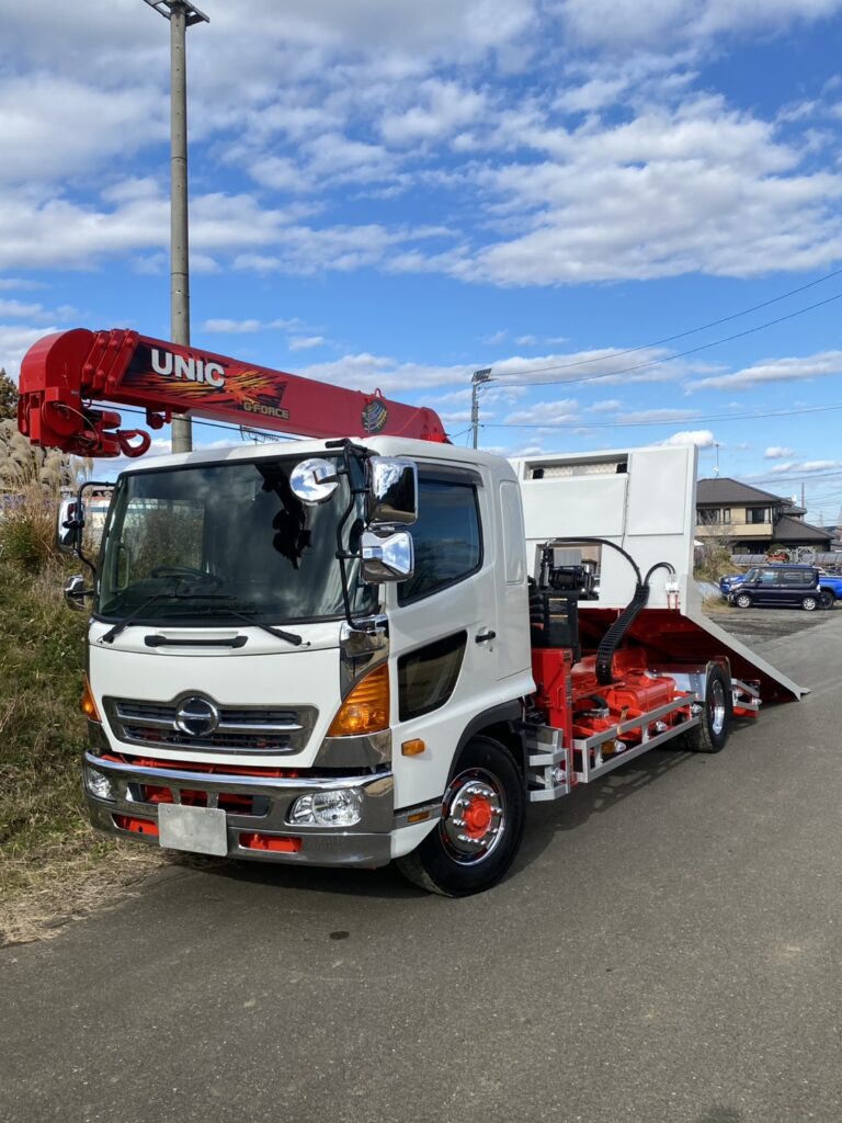 【K-0029】日野レンジャー FE7JLA 増トン ユニック付 セルフローダー H23年 4段フックイン ラジコン付 花見台 最大積載7000kg 車検付